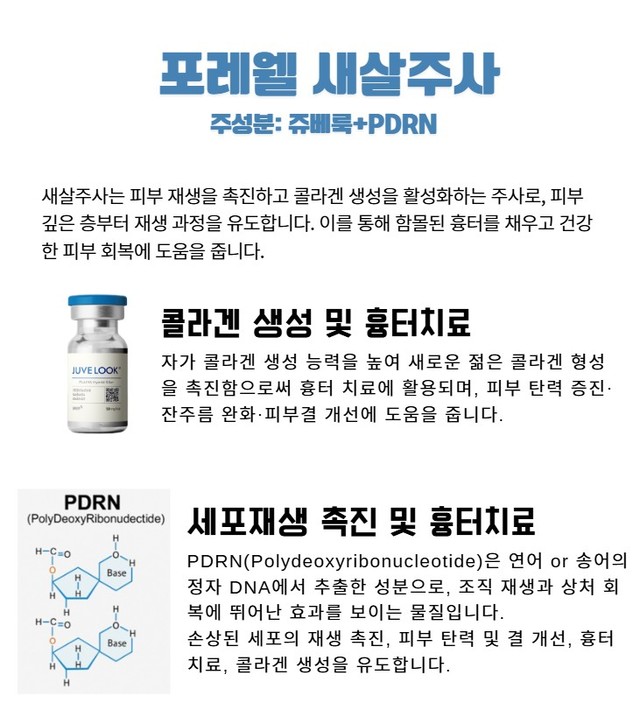 새살이 차오르도록 돕는 시술로, 다양한 성분(PLA, 쥬베룩 등)을 이용하며